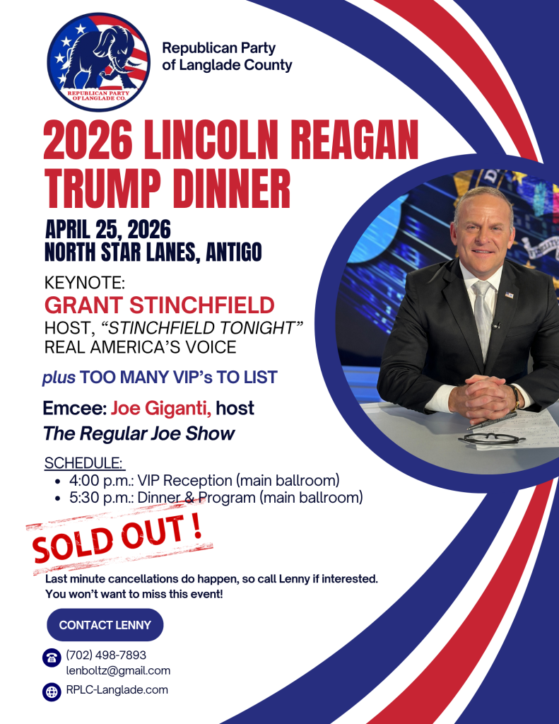 APRIL 25th: The Republican Party of Langlade County’s 2026 Lincoln Reagan Trump Dinner